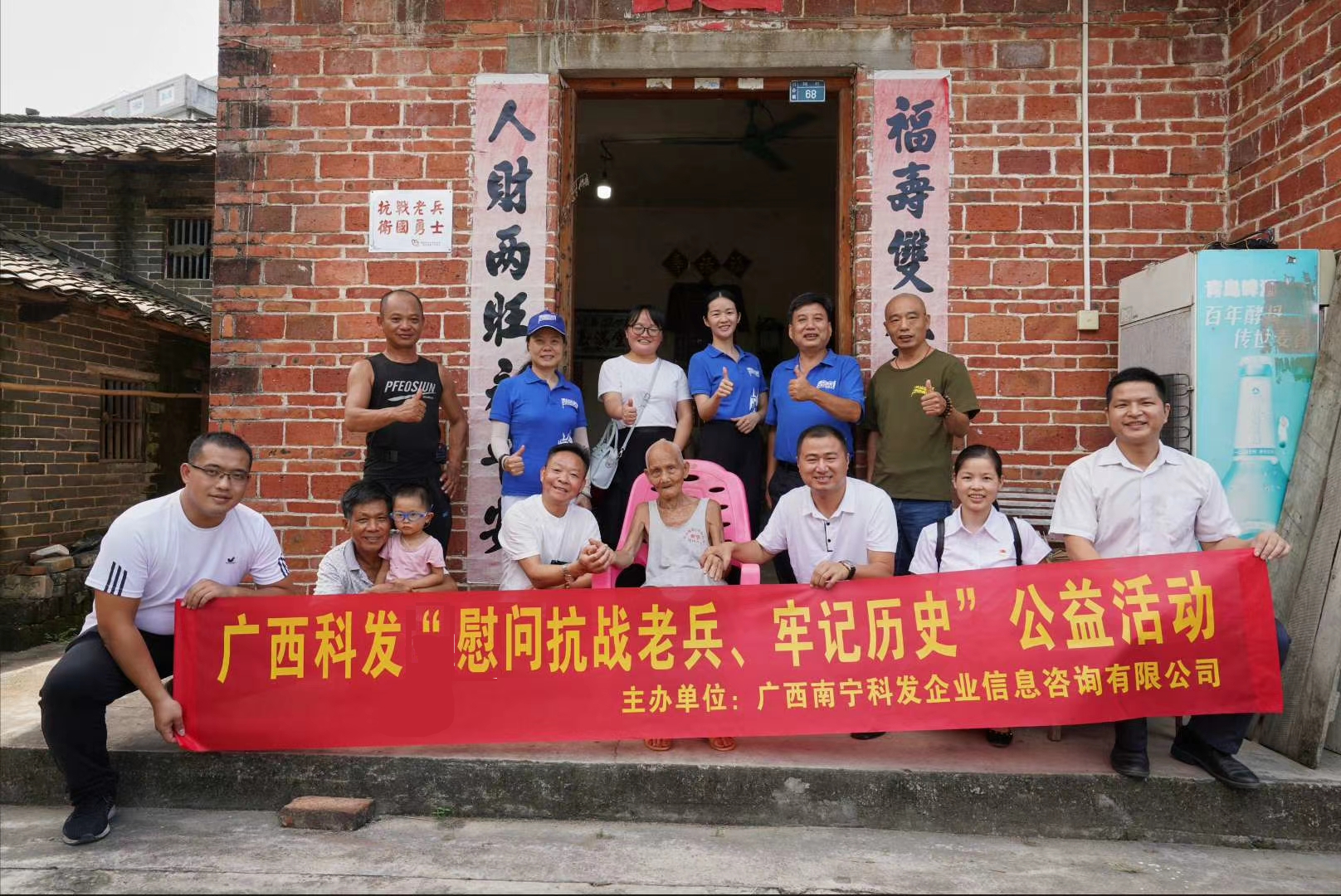 2020年9月18日,是纪念“九一八”事变爆发89周年的日子,科德集团广西公司开展了“慰问抗战老兵、牢记历史”公益活动。集团总裁杨罗生先生率领广西公司党支部书记、管理层、志愿者一行12人,前往广西壮族自治区南宁市横县百合镇,走访慰问了陶盛万、邓标、苏大宰三位抗战老兵,为他们送去了慰问金和慰问品,并致以崇高的敬意和诚挚的问候。