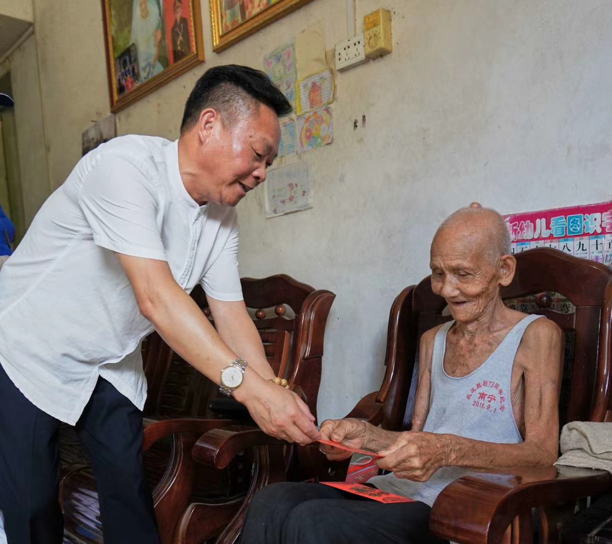 科德集团广西公司总经理张 正海先生为抗战老兵邓标献上慰问金