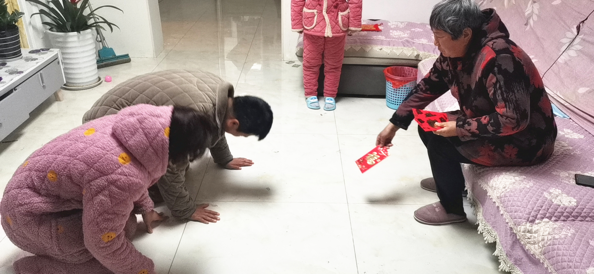 滴水之恩,涌泉相报。关爱父母,是我们的责任。男儿膝下有黄金,只跪天地与双亲。今年过年给母亲行磕头之礼。