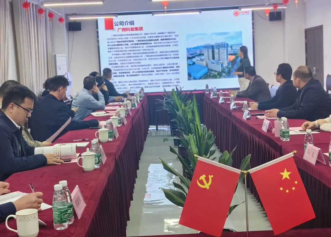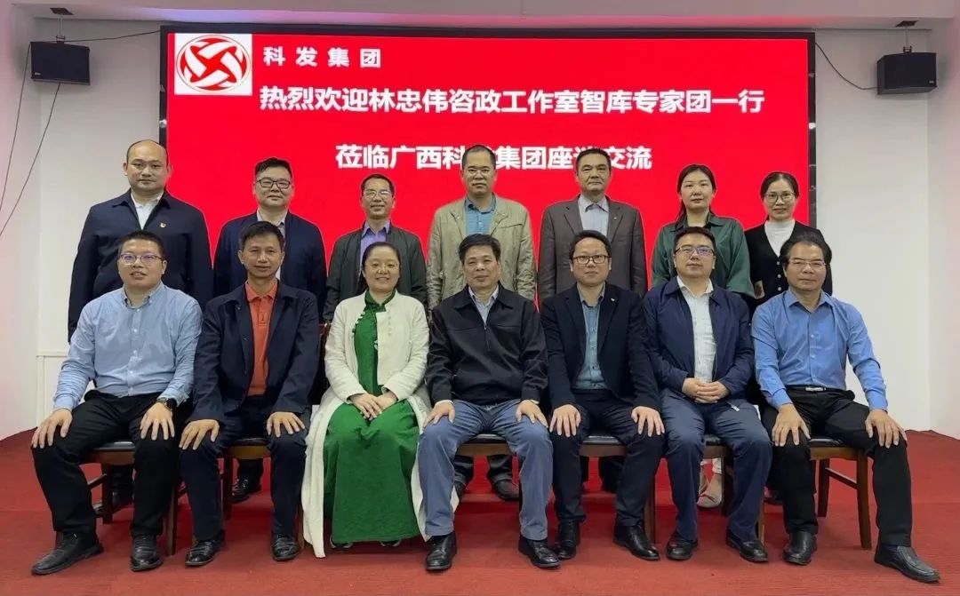 2023年4月10日下午,林忠伟咨政工作室智库专家团自治区决策咨询专家林忠伟、广西经贸学院智慧商务产业学院党支部书记赵晓阳、南宁师范大学旅游与文化学院原党委书记、副教授黄日干等一行9人莅临广西科发集团参观学习交流。