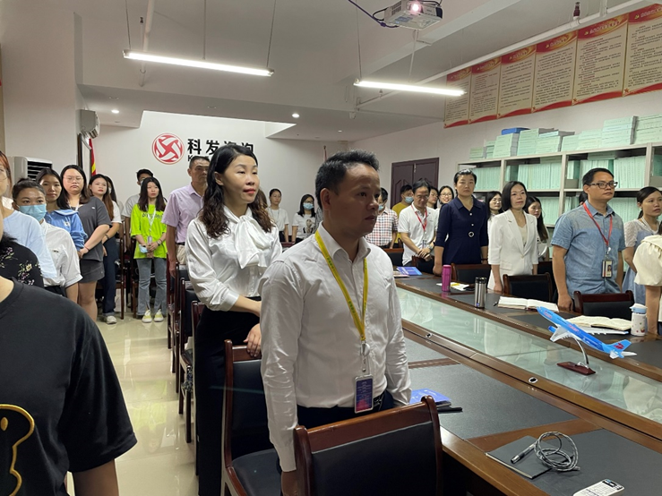 广西科发咨询在集团总裁杨罗生的领带下牢记历史,不忘初心,培训开始前,全体员工一齐颂唱国歌,铭记先辈们热血奋斗的历史,激昂歌声渐止,由广西科发咨询党支部书记范凯华主持,奏唱司歌《我相信》与朗诵广西科发企业文化,坚定信念,肩负起时代赋予的使命。