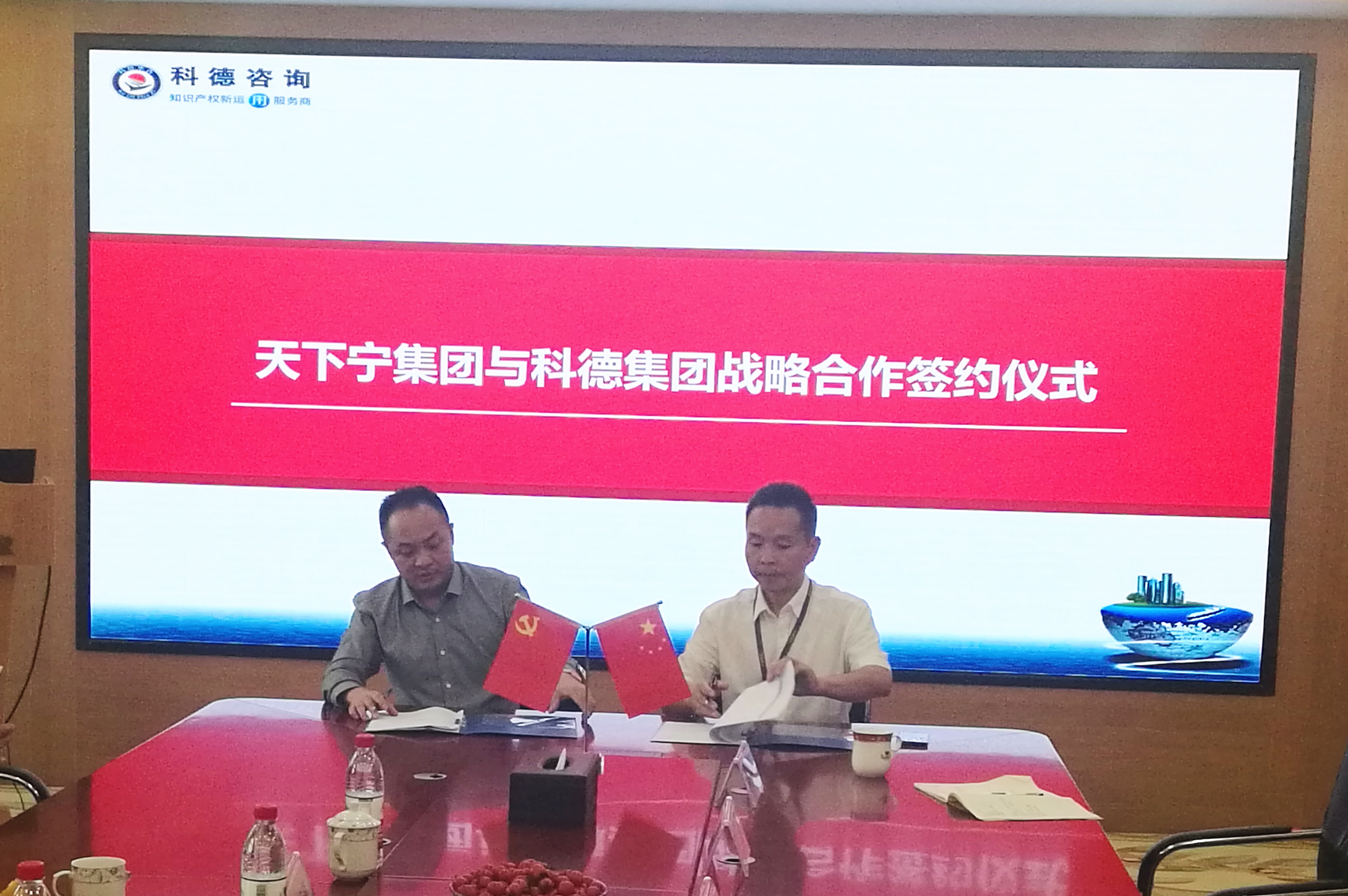 2019年9月18日,湖南科德华咨董事长杨春生与丁国强先生(民建省委非遗专委会副主任、宁商公益促进会会长、天下宁集团董事长)在科德华咨总部现场举行了签约仪式。聘请丁国强先生成为科德华咨的监事,与科德华咨强强联合、达成共赢。