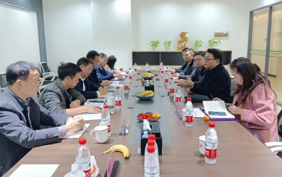 11月18日下午,湖南省商务服务中心党委书记、主任张军平一行7人来沈参加第三届“辽洽会”期间,在辽宁省湖南商会秘书长汪芳竹、辽宁省湖南商会副会长沈阳鹰隼科技有限公司总经理周俊、沈阳科德信息咨询有限公司总经理改广凡、沈阳三优进出口贸易有限公司总经理周利民陪同下,走访调研湖南商会会员企业辽宁中咨华宇环保技术有限公司,并在沈阳国际设计谷1号楼9楼公司会议室举行交流座谈会,会议由湖南商会秘书长汪芳竹主持。