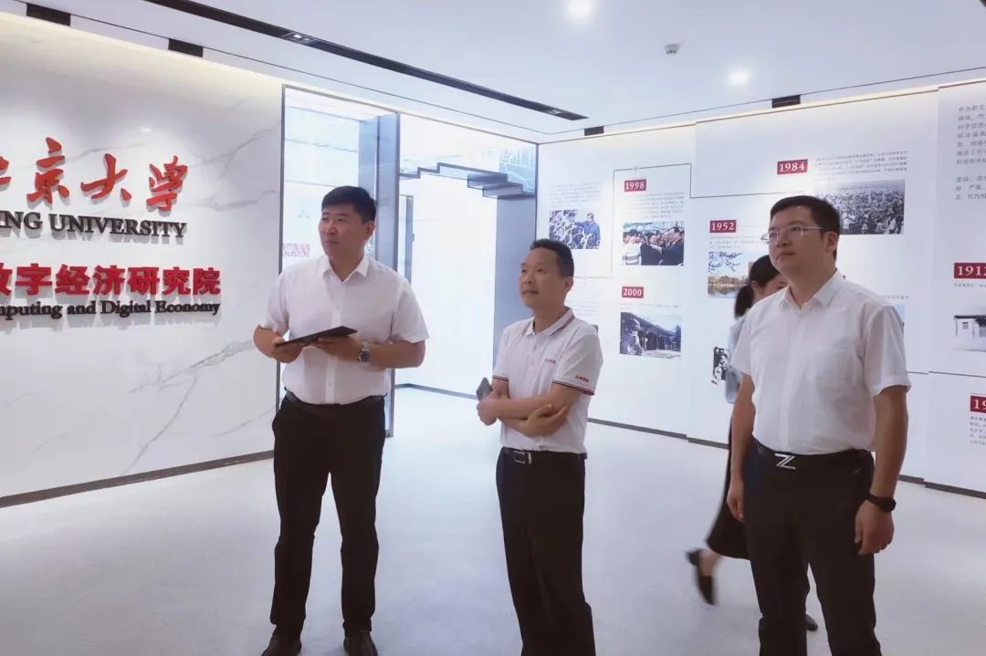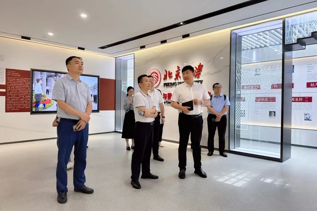在研究院科技开发中心主任刘伟的陪同下,杨春生董事长一行参观了研究院展厅,听取了关于北大红楼历史、研究院下设7个中心和1个智库建设情况、研究方向、先进科技成果以及政府合作和产业协作发展情况。