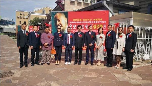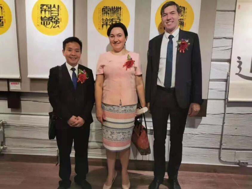 莫斯科时间8月13日上午,举办宋旦汉字艺术俄罗斯展开幕式。为庆祝新中国成立70周年暨中俄建交70 周年,宋旦汉字艺术展系列活动开幕式在俄罗斯伊尔库茨克市美术馆隆重举行。致公党省委田宗之秘书长、伊尔库茨克州文化部副部长叶列娜·阿帕诺维奇、中国驻俄罗斯伊尔库茨克总领馆领事张晓东,科德华咨董事长杨春生等出席活动并为汉字艺术展开幕剪彩。