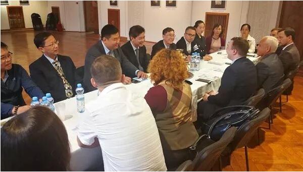 莫斯科时间8月14日上午10点,与俄罗斯亚洲工业商业企业家联合会会谈。考察团拜访俄罗斯亚洲工业企业家联合会并开展座谈交流。俄罗斯亚洲工业企业家联合会是一个为俄罗斯与亚洲国家的社会团体和企业、组织巩固协同合作的社会组织。其最重要的职能是为俄罗斯与亚洲国家的商业团体在多方合作方面消除文化壁垒,为建立统一经济共同体提供协助,该协会主席刘丽达,是中俄友好协会的副会长,刘少奇的曾孙女。座谈中,田宗之一行向俄罗斯友人推介了湖南致公,介绍了中国共产党领导的多党合作制度,表达了进一步加强交流,为“一带一路”商贸合作作出积极贡献的意愿。