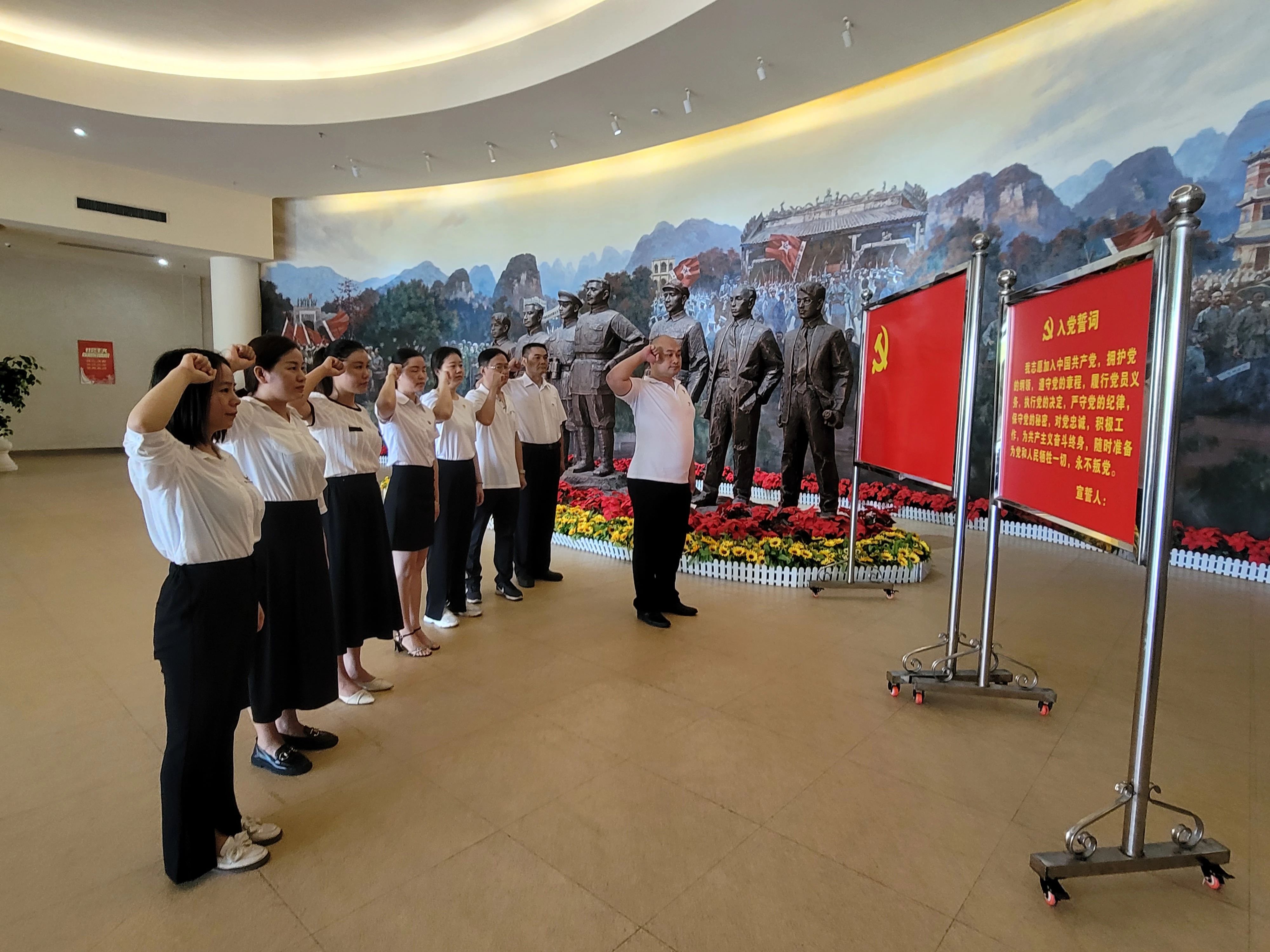 科发集团党支部书记范凯华带领集团全体党员重温入党誓词,进一步强化党员的初心和使命。