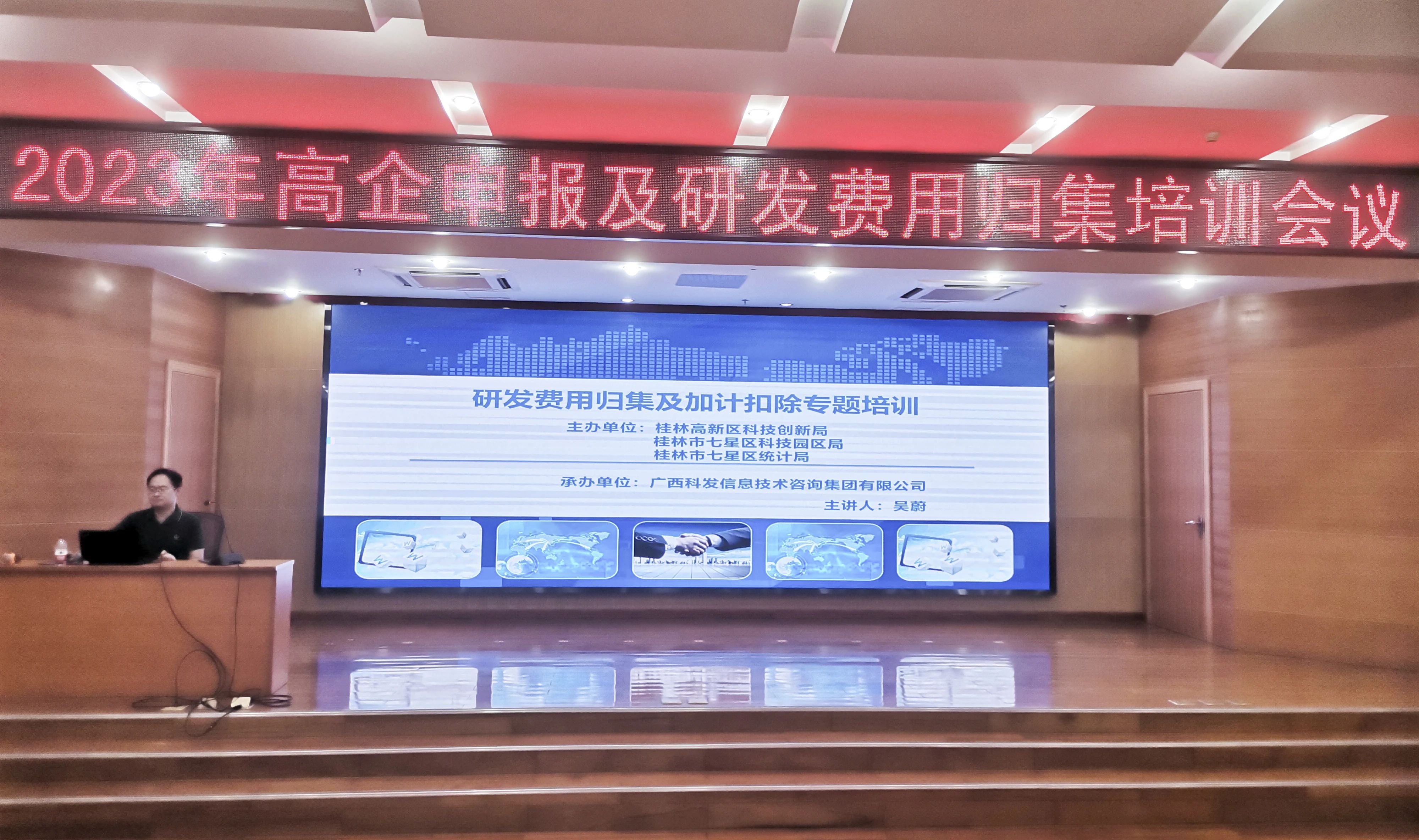 8月4日,科发集团应桂林高新区科技创新局邀请,为桂林市七星片区企业开展 高企规范化管理及研发费用归集 培训会。此次培训会由桂林市高新区科技创新局、桂林市七星区科技园区局、桂林市 七星区统计局联合主办,广西科发信息技术咨询集团有限公司 协办。